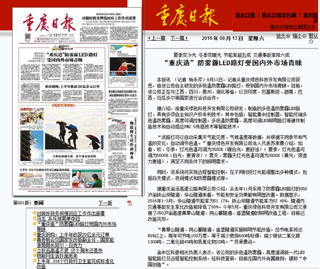 Yuzhong District Commission relevant responsible person said that the company's color temperature and brightness. Anti fog and haze of a new generation of LED intelligent lighting and intelligent remote control system, the science and technology novelty, at home and abroad is the first, which is called "China creation".