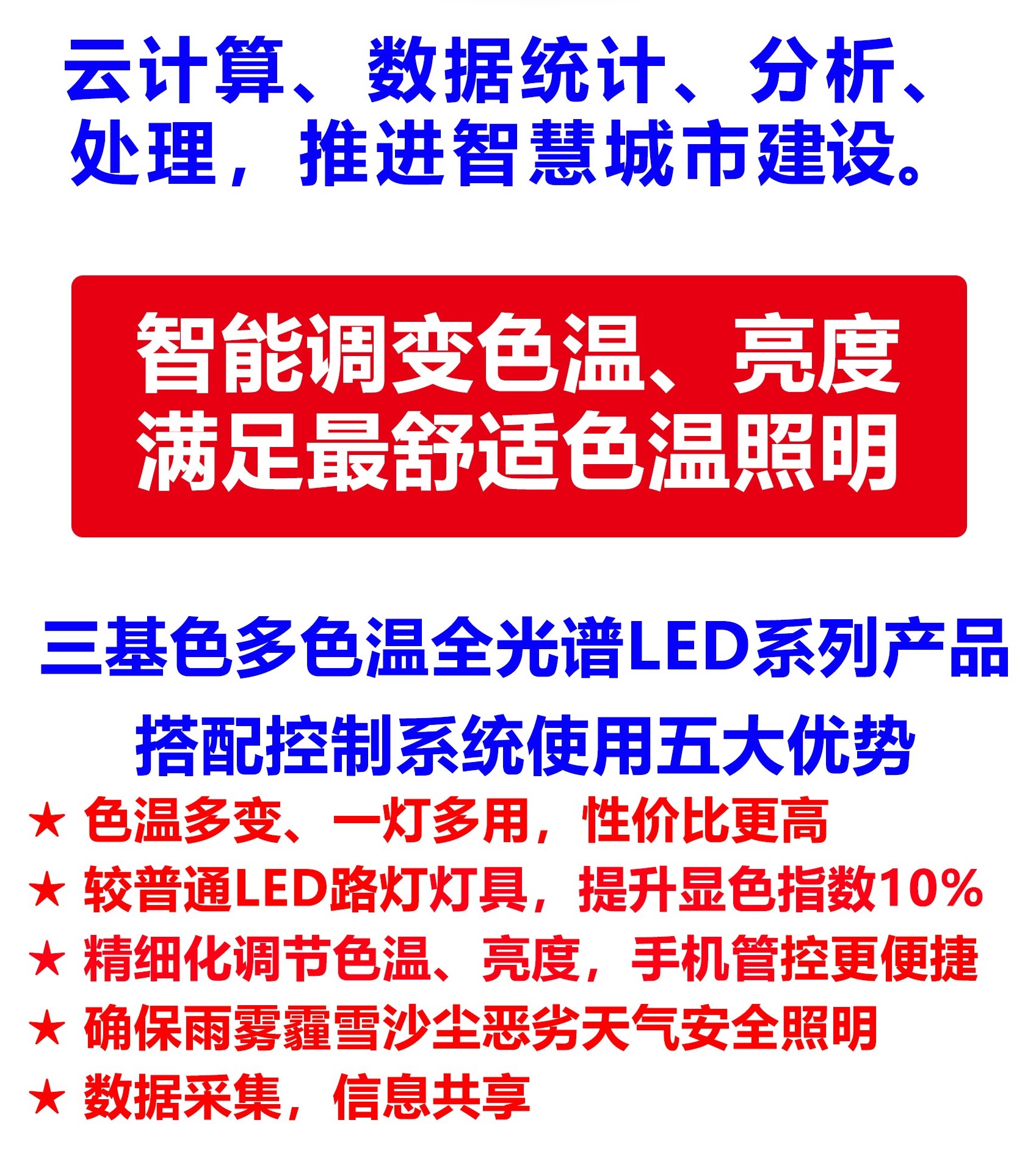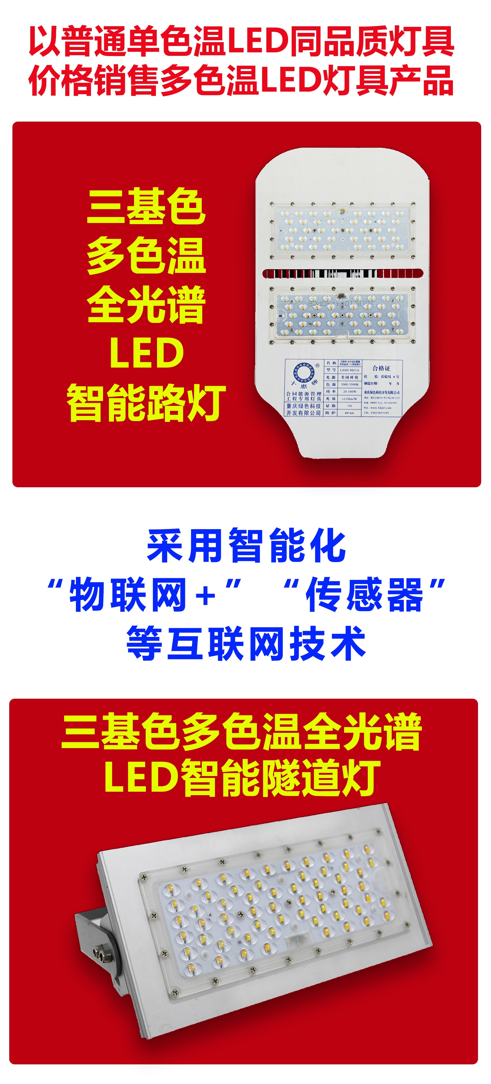 重慶“中國創(chuàng)造”三基色多色溫全光譜LED人工智能路燈技術(shù)特點介紹